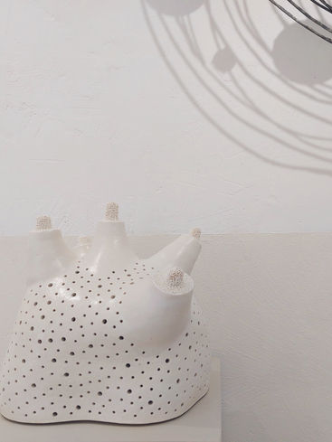 Christiane Filliatreau et ses sculptures céramiques blanches.
